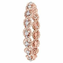 Stella Grace 1/8 Carat T.W. Diamond Rhodium-Plated Sterling Silver Scalloped Woven Ring Rose