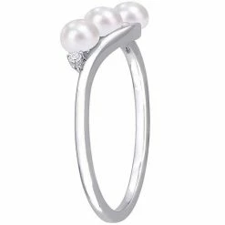 Stella Grace Sterling Silver Freshwater Cultured Pearl & Diamond Accent Flower Cocktail Ring