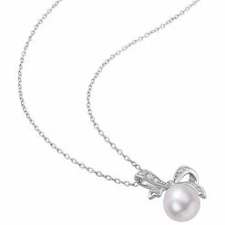 Stella Grace Sterling Silver Freshwater Cultured Pearl & Diamond Accent Drop Pendant Necklace