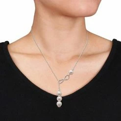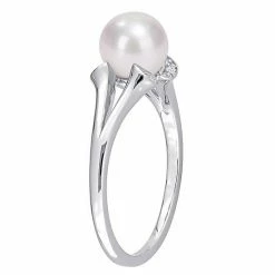 Stella Grace Sterling Silver Freshwater Cultured Pearl & Lab-Created White Sapphire Split-Shank Ring