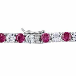 Stella Grace Sterling Silver Lab-Created Ruby & Lab-Created White Sapphire Halo Pendant Necklace