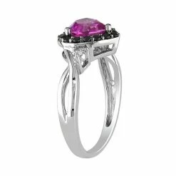 Stella Grace Sterling Silver Lab-Created Pink Sapphire, Black Spinel And Diamond Accent Heart Ring