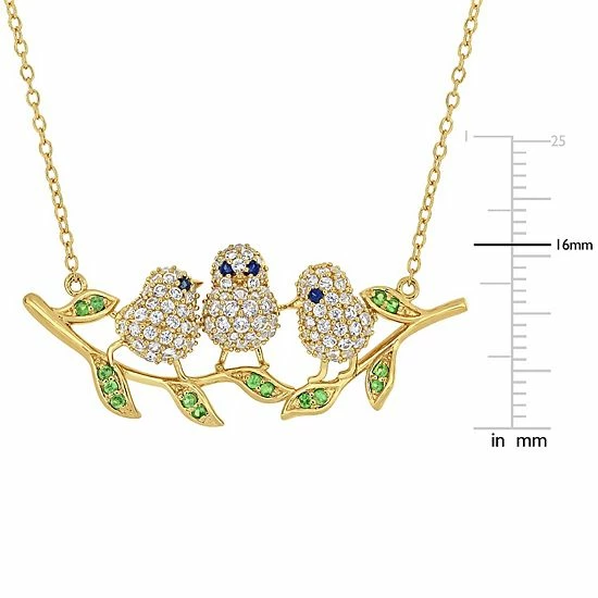 Featuring three lab-created white sapphire chicks perched on a branch with Tsavorite leaves, this Stella Grace Bloom necklace is an adorable complement to your casual attire.