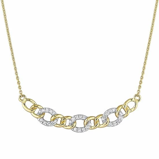 This understated oval link necklace features genuine diamonds and 10k gold for a look that shines.