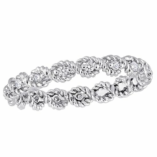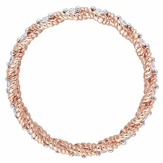 Featuring illuminating round-cut diamonds set within a twisted rope band, this 10k gold infinity eternity ring offers a distinctive look you’ll love.