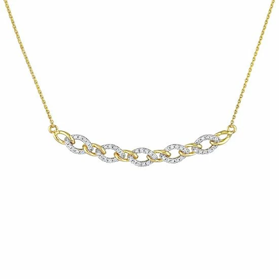 This understated oval link necklace features genuine diamonds and 10k gold for a look that shines.