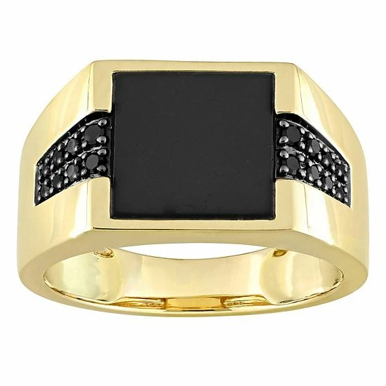 Accent your look with this stunning Stella Grace onyx and black diamond ring, crafted with 10k gold.