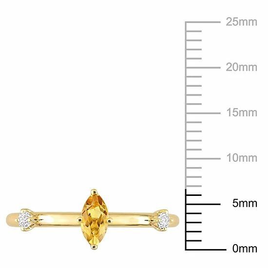 Featuring a marquise-cut citrine center stone accented by a round-cut white topaz on each side, this 10k gold Stella Grace stack ring is simply stunning.