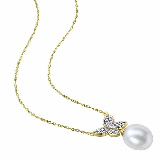 Designed with a lustrous freshwater cultured pearl and dazzling, round-cut diamonds, this Stella Grace butterfly pendant elevates your style.