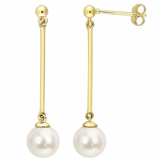Adorned with luminous freshwater cultured pearls, these Stella Grace 14k gold drop earrings are an eye-catching accessory you’ll love.