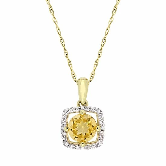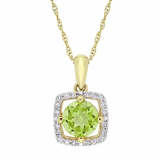 Featuring a round-cut center gemstone framed with shimmering diamonds, this 10k gold necklace is a beautiful complement to any outfit.