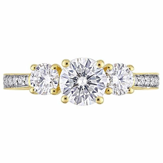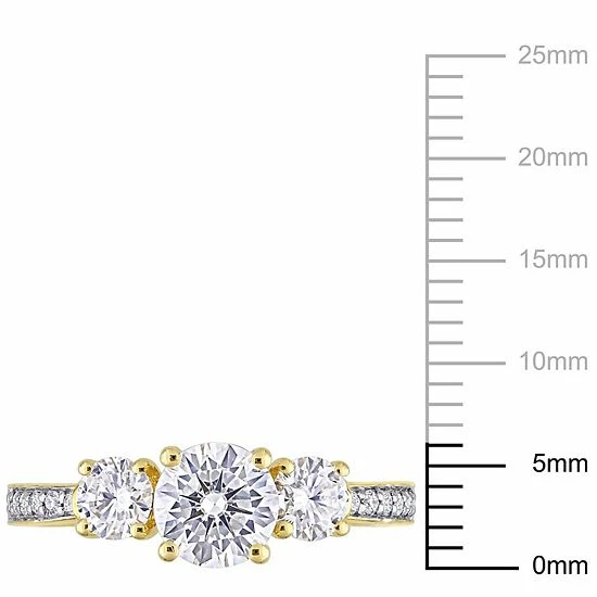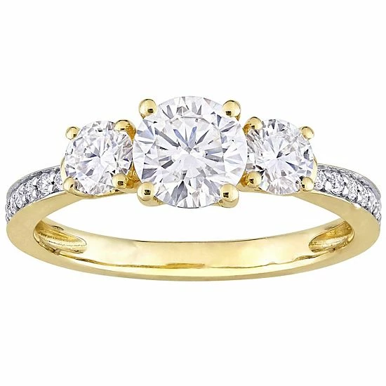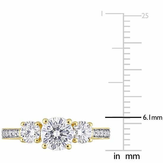 This gorgeous 10k gold lab-created moissanite 3-stone engagement ring is the perfect way to show your eternal love and affection to the most important person in your life.