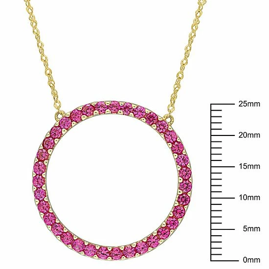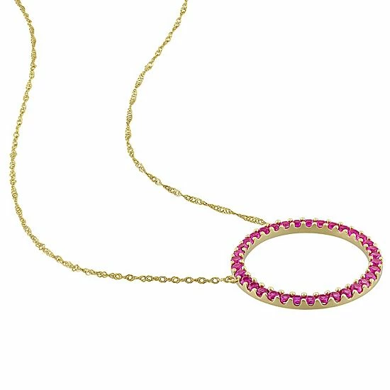 Add some fun and excitement to your fine jewelry collection with this gorgeous 10k gold lab-created ruby circle pendant necklace.