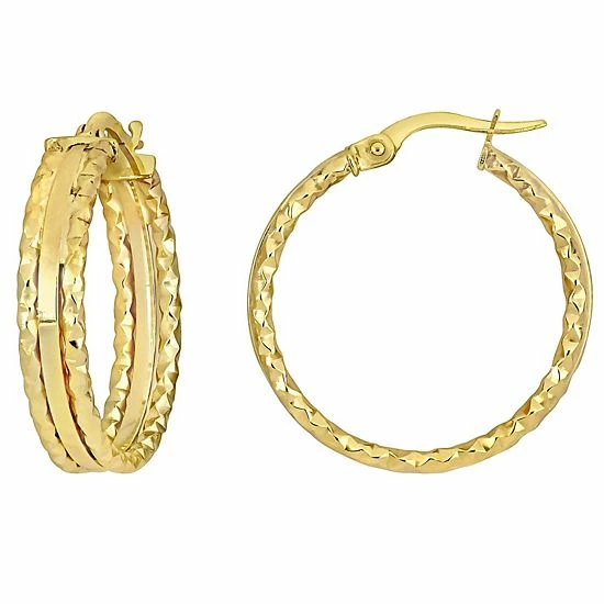 Uniquely designed, these Stella Grace triple row textured hoops will be your new go-to earrings.