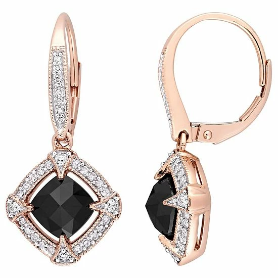 With a sparkling diamond halo and alluring black diamond center stone, these Stella Grace 10k rose gold earrings are an eye-catching accessory you’ll love.