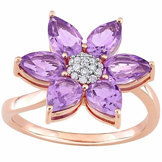 Adorned with amethyst gemstones and diamond accents arranged in a lovely flower motif, this 10k rose gold Stella Grace ring is an eye-catching addition to your look.