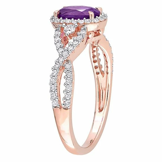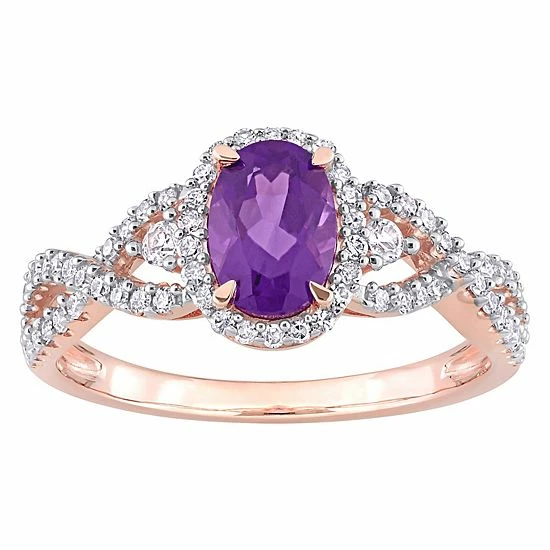 Delight in the exquisite design of this Stella Grace ring. Adorned with an oval-cut amethyst center stone and white sapphire accents, this twisted ring enchants from every angle.