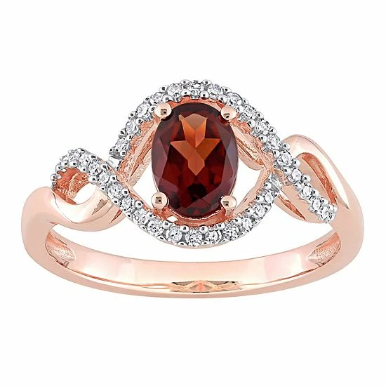 Featuring an oval-cut garnet, shimmering diamond accents, and a stunning, vintage-inspired design, this Stella Grace engagement ring offers timeless beauty.