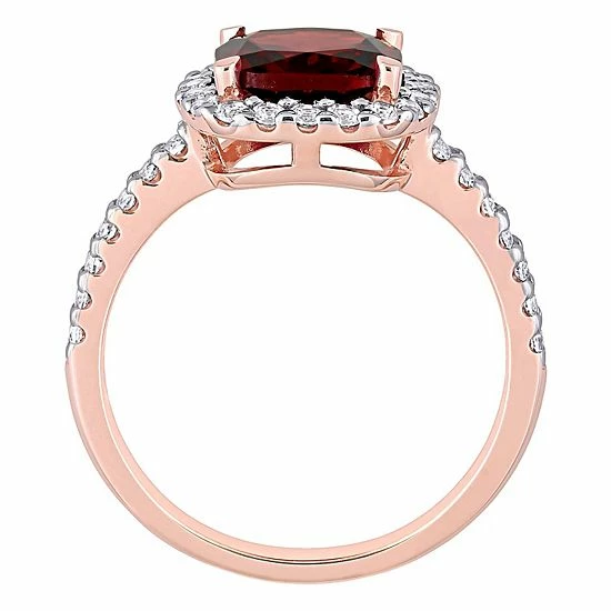 Elevate your style with this bold garnet and white topaz halo ring from Stella Grace.