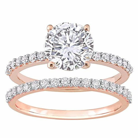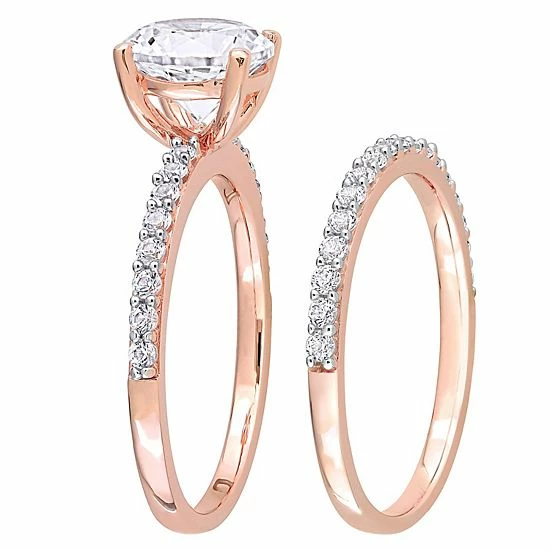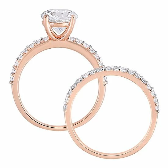 With 10k rose gold and lab-created white sapphires, this Stella Grace bridal ring set will capture her heart.
