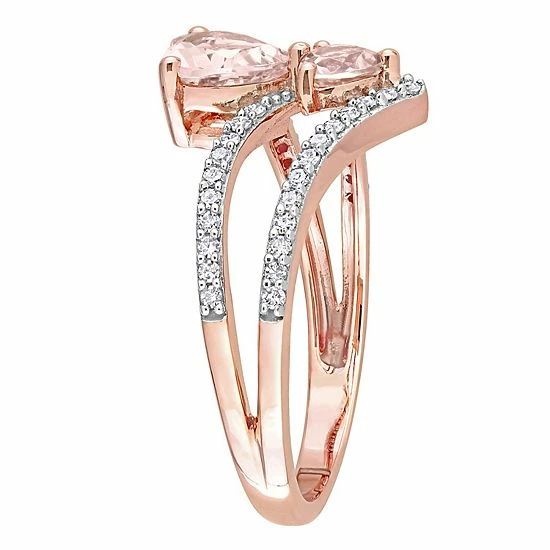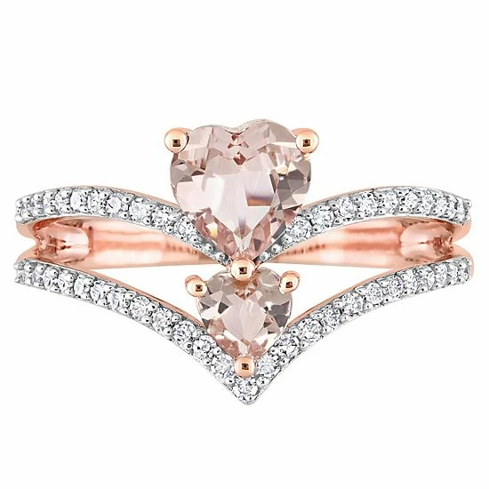 Adorned with sparkling morganite and diamond accents, this Stella Grace 10k rose gold two-stone heart ring is a beautiful addition to your wardrobe.