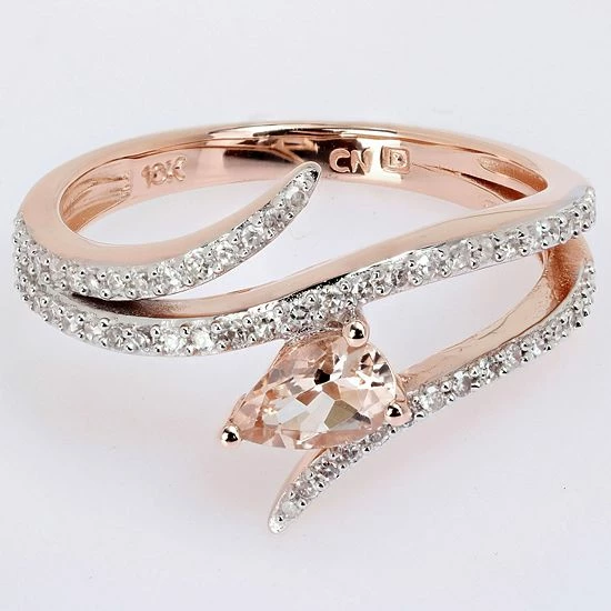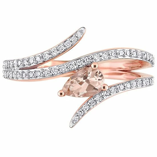 Adorned with sparkling morganite and diamond accents, this Stella Grace 10k rose gold open wrap ring is a beautiful addition to your wardrobe.