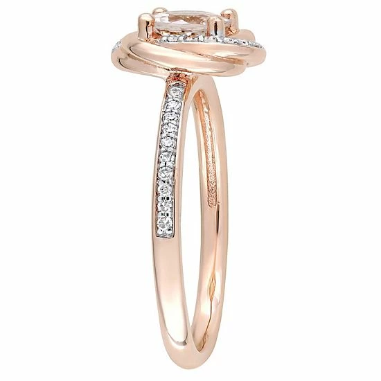Adorned with sparkling morganite and diamond accents, this Stella Grace 10k rose gold swirl halo stud ring is a beautiful addition to your wardrobe.