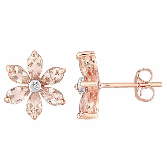 Adorned with sparkling morganite and a diamond accent, these Stella Grace 10k rose gold flower earrings are a beautiful addition to your wardrobe.
