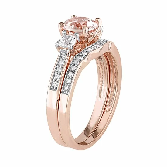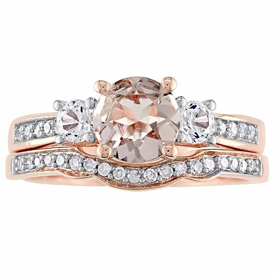 Set her heart soaring when you propose with this gorgeous diamond engagement ring set. Adorned with a morganite center stone and lab-created white sapphire and diamond accents, this 10k rose gold ring set abounds with feminine beauty.