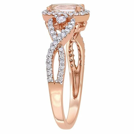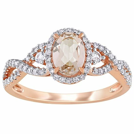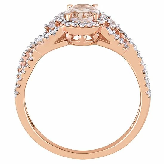 Adorned with sparkling morganite, white sapphires and diamond accents, this Stella Grace 10k rose gold halo ring is a beautiful accessory you’ll love.