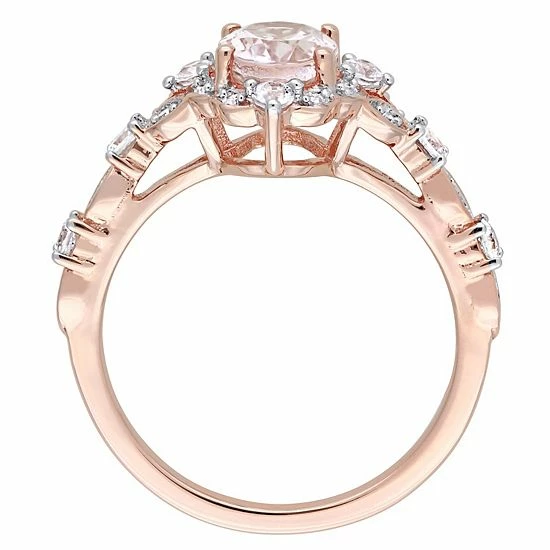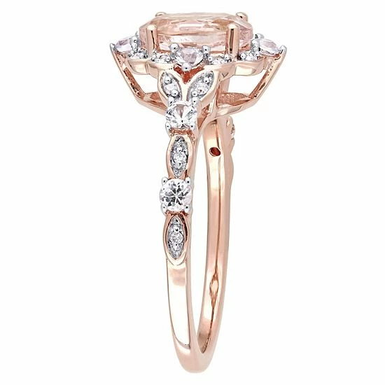 She’s sure to love the vintage look of this dazzling Stella Grace 10k rose gold, morganite, white sapphire and diamond accented halo ring.