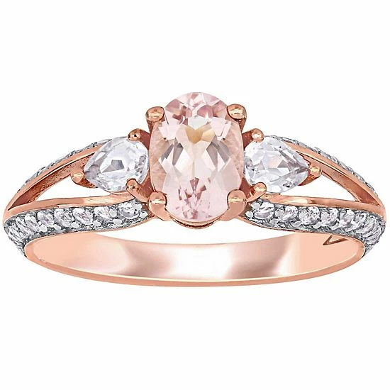 This gorgeous Stella Grace 10k rose gold morganite and white topaz split shank engagement ring is sure to put a smile on her face.