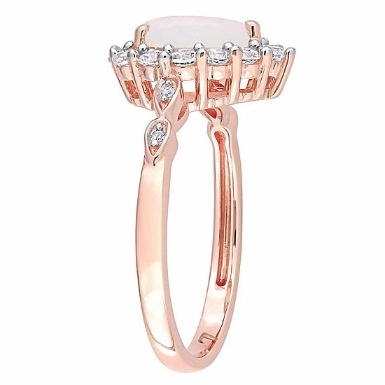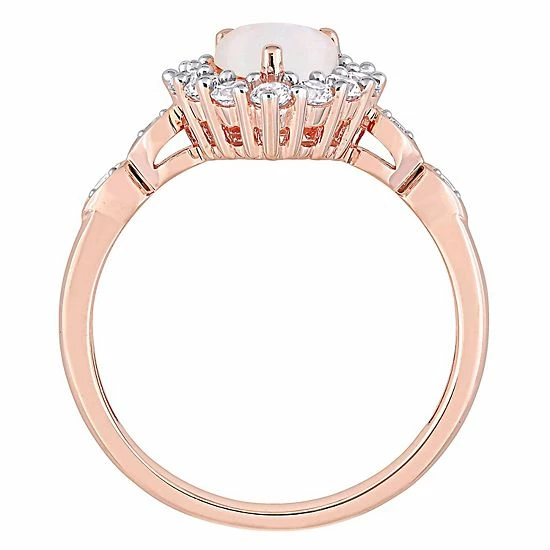 Refresh your accessories collection with this striking opal, white sapphire and diamond accent ring from Stella Grace.