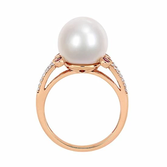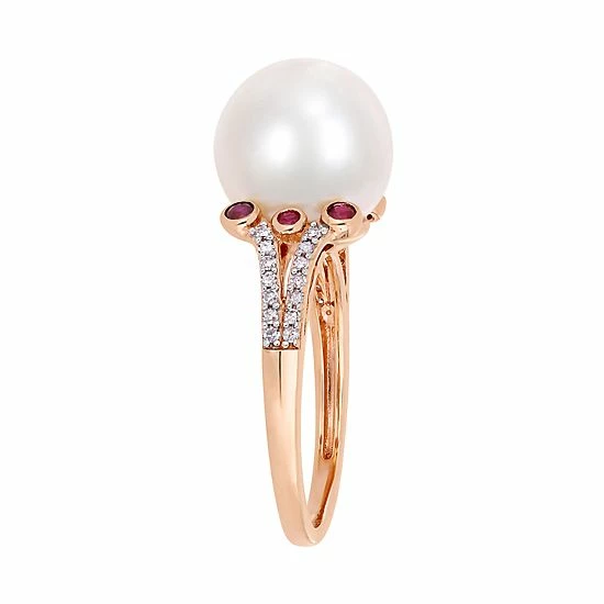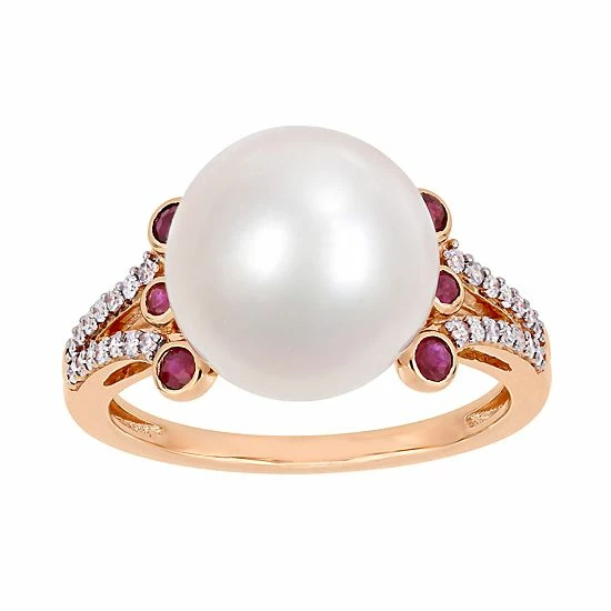 Featuring a beautifully lustrous freshwater cultured pearl accented with dazzling rubies and diamonds, this Stella Grace ring is sure to impress.