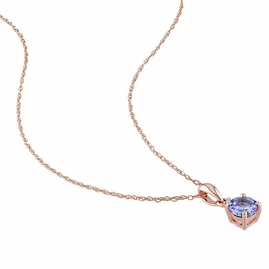 This Stella Grace 10k rose gold tanzanite solitaire set showcases a diamond accented pendant necklace and stud earrings that are sure to bring a smile to her face.