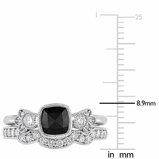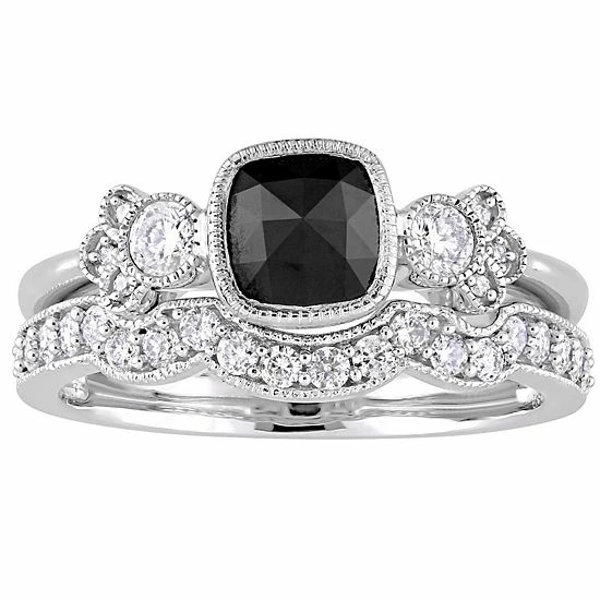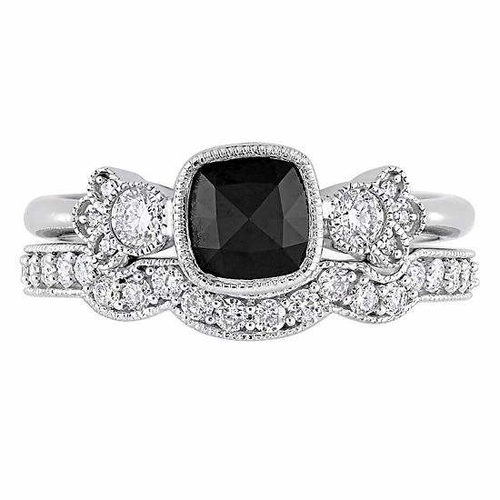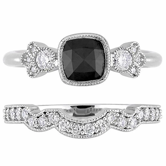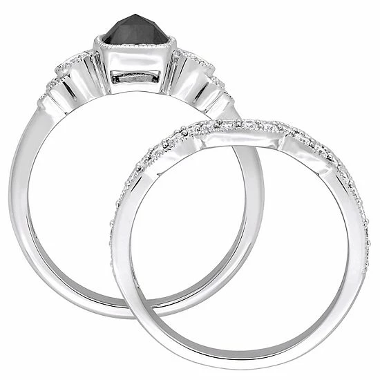 Celebrate your love and commitment with this beautiful Stella Grace bridal set. Featuring an engagement ring and wedding band, each adorned with black and white diamonds, this set is simply stunning.
