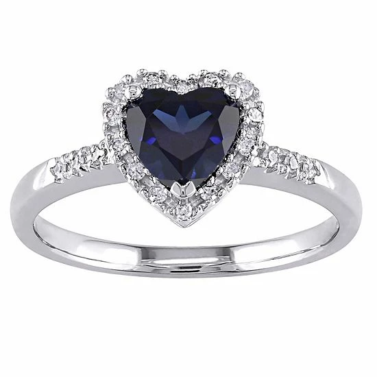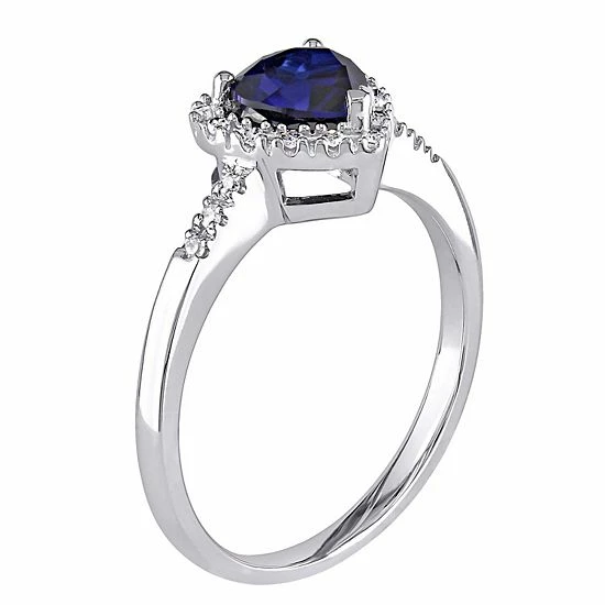 Featuring a stunning lab-created sapphire center stone and diamonds, this 10k white gold heart ring is the perfect way to finish any outfit.