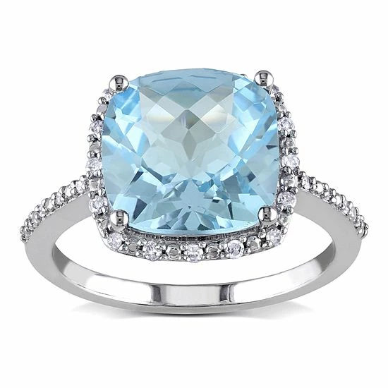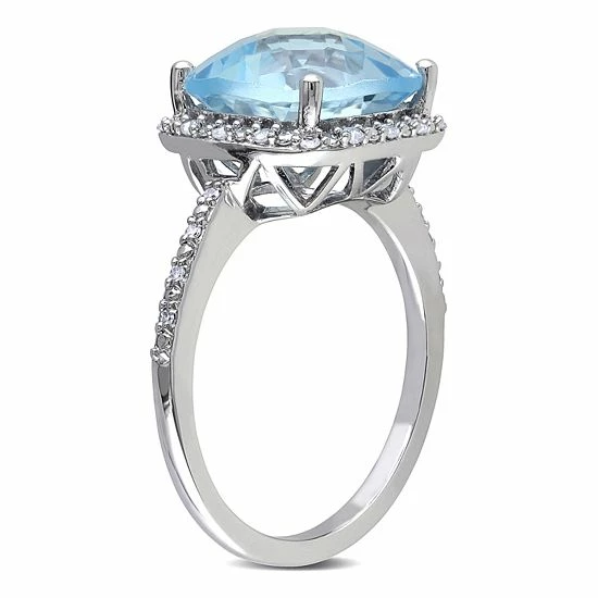 Beautifully adorned with a cushion-cut sky blue topaz center stone, and embellished with shimmering diamond accent stones, this 10k white gold cocktail ring is sure to draw admiring glances.
