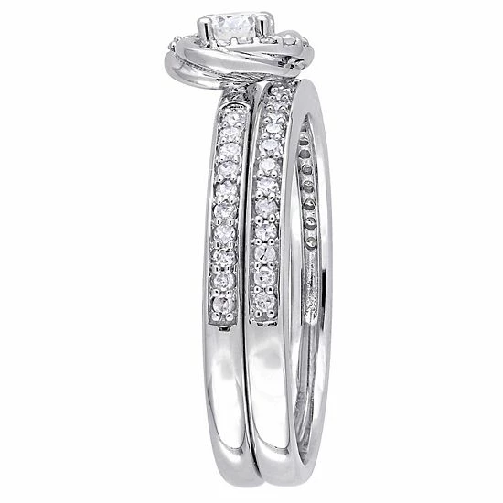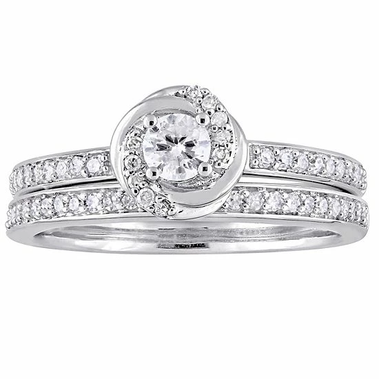 Complete with a love knot-inspired engagement ring and a matching wedding band, this beautiful Stella Grace diamond bridal set is a breathtaking symbol of your love.