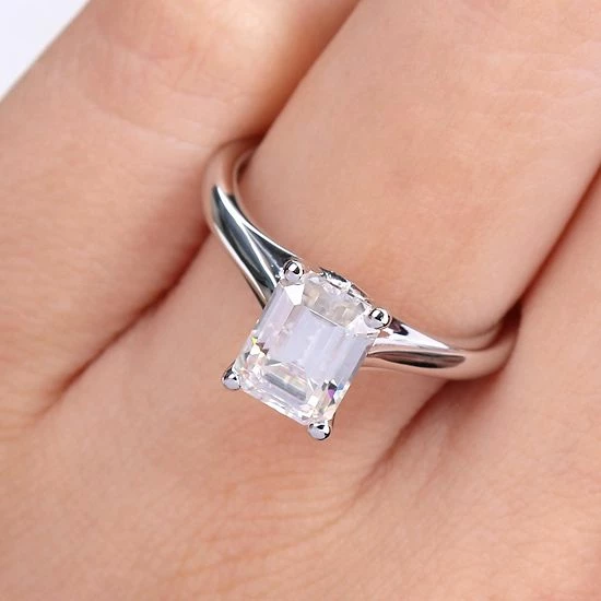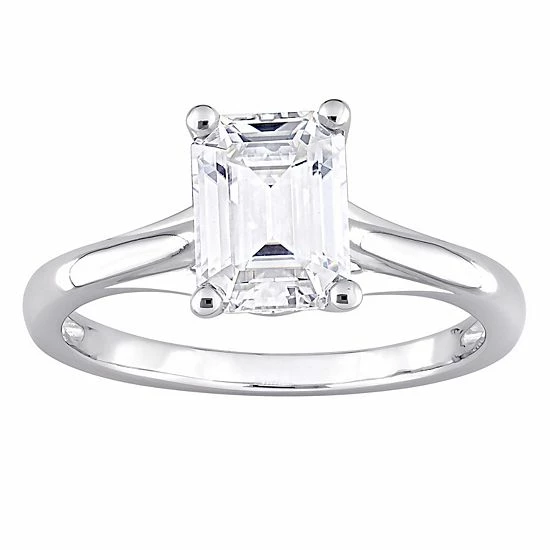 Give her a symbol of your everlasting love with this Stella Grace 10k white gold engagement ring, set with a sparkling lab-created moissanite emerald-cut solitaire.