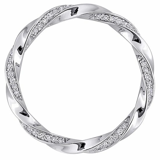Illuminating round-cut diamonds and a twisted band give this 10k white gold eternity ring a distinctive look you’ll love.