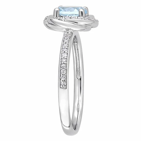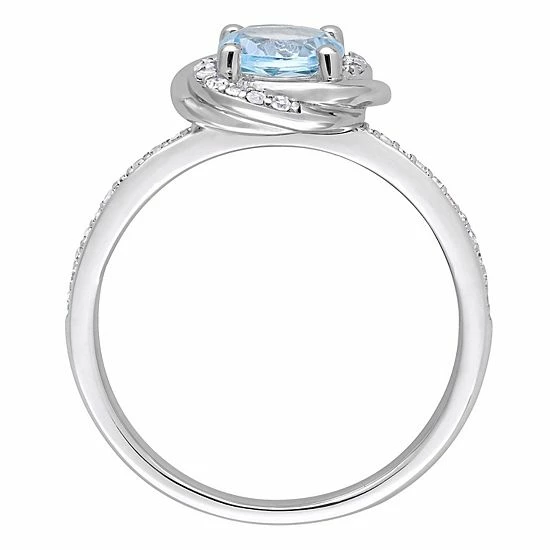 These gorgeous 10k white gold diamond and sky blue topaz spiral ring is a must-add to your fine jewelry collection.