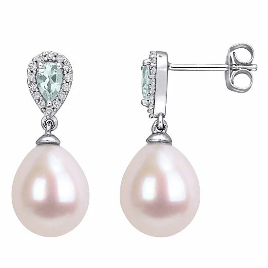 Complete your lavish look with these elegant Stella Grace aquamarine and freshwater cultured pearl drop earrings.