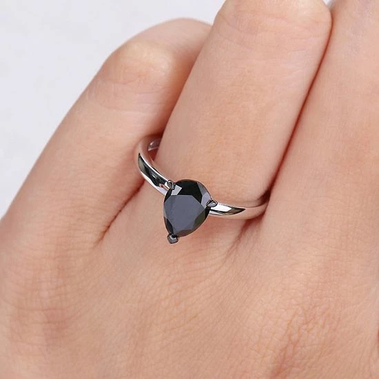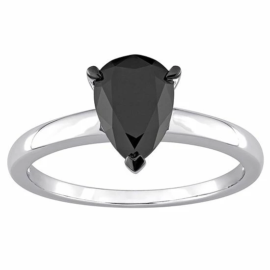 Designed with a teardrop-shaped black diamond, this Stella Grace solitaire ring is simply stunning.