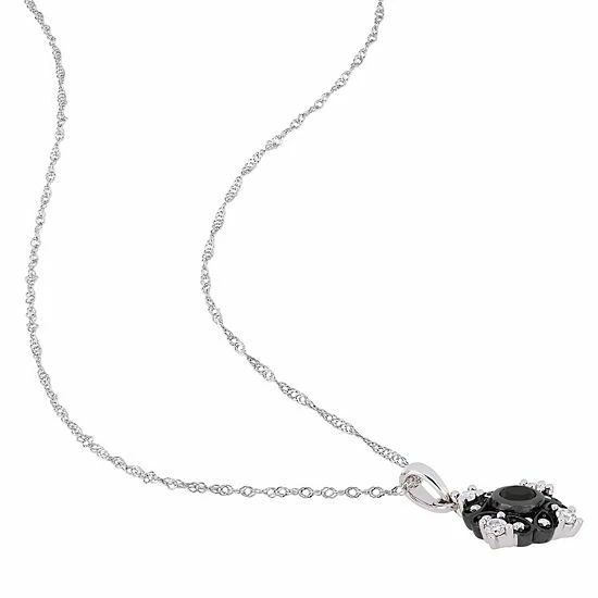 Bold and beautiful, this black and white diamond pendant necklace from Stella Grace adds alluring style to any outfit.