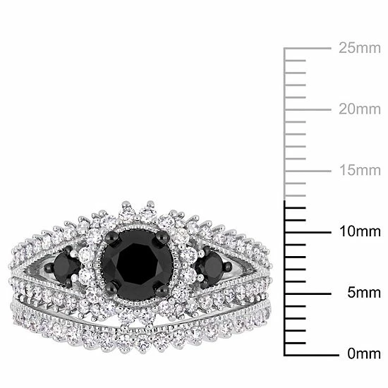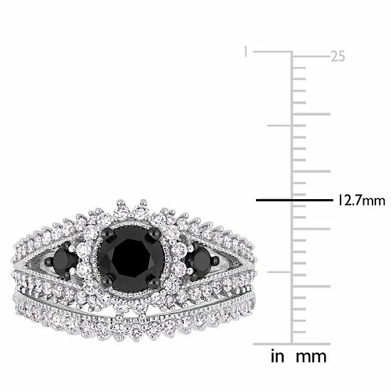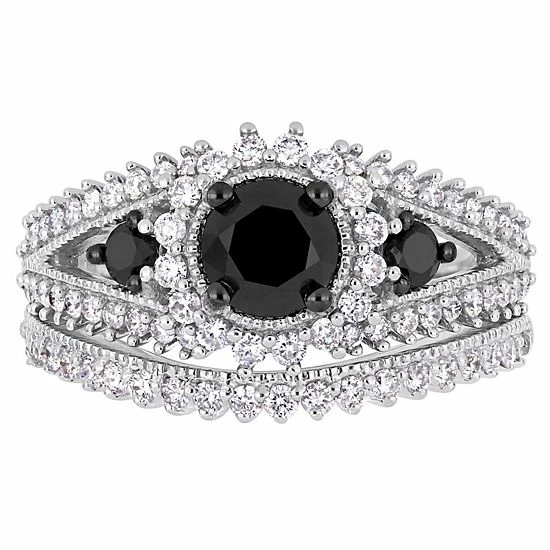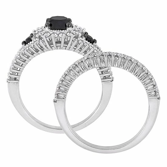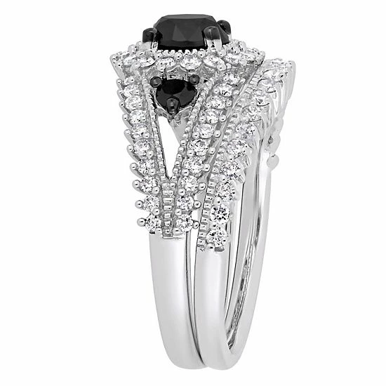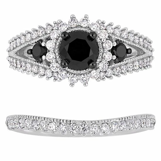 Celebrate your love and commitment with this beautiful Stella Grace bridal set. Featuring an engagement ring and wedding band, each adorned with black and white diamonds, this set is simply stunning.