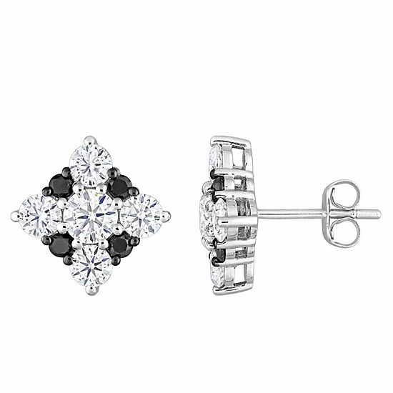 Contrasting black and white diamonds give these 10k white gold Stella Grace stud earrings eye-catching style.