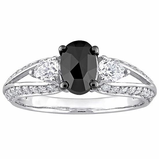 Give her a symbol of your everlasting love with this Stella Grace oval black diamond and lab-created moissanite engagement ring, set in stunning 10k white gold.