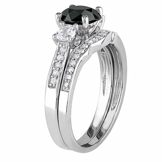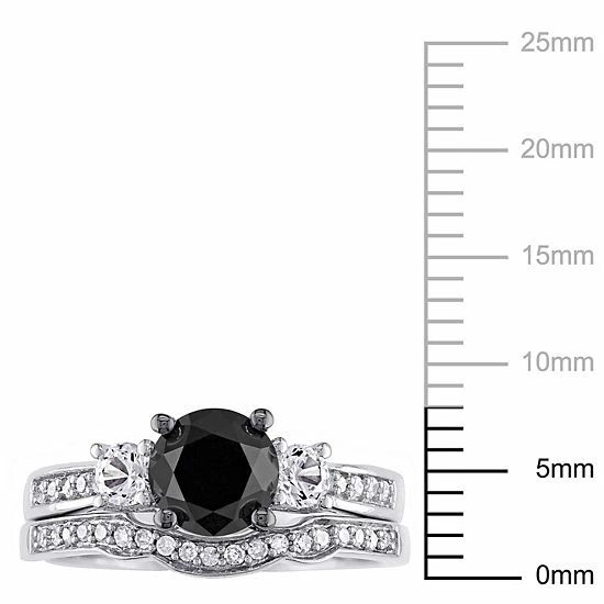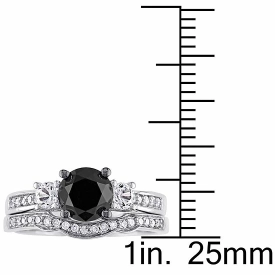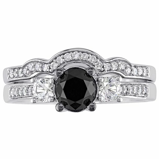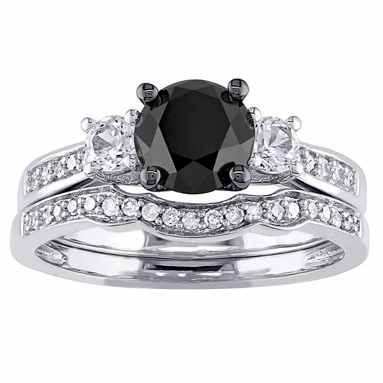 Celebrate your love and commitment with this lovely Stella Grace bridal set. It features an engagement ring and wedding band beautifully adorned with black and white diamonds, and lab-created white sapphires.