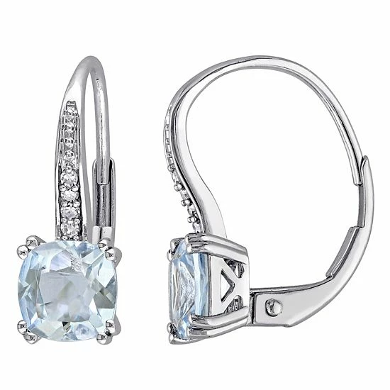 Decorated with aquamarine center stones and shimmering diamond accents, these Stella Grace leverback earrings enhance any ensemble.